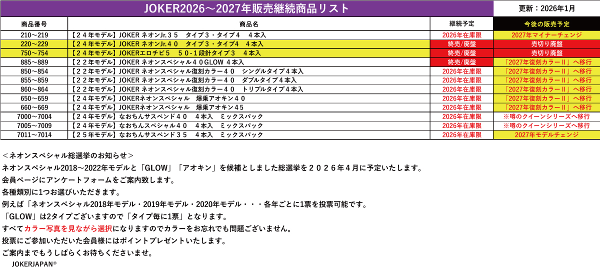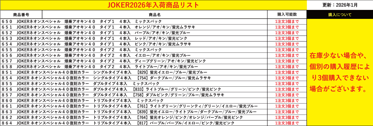 ★2026年シーズン JOKERマルイカシリーズの入荷予定ご案内★