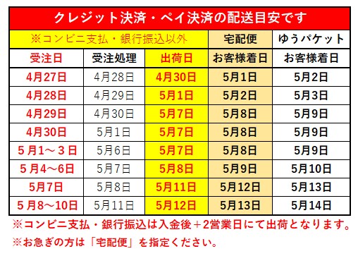 ★GW前後の出荷スケジュールアップいたしましたご参照くださいませ。