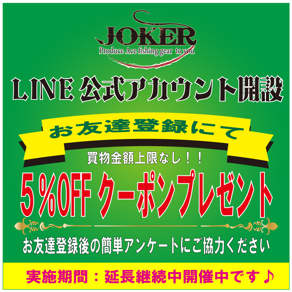 📣JOKER公式ライン開設のお知らせ🥳 お買上げ限度条件なし5%クーポン贈呈中です😄 お友達登録お願い致します🙇